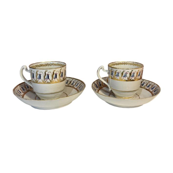 A pair of hand painted Regency English porcelain cups and saucers circa 1810.