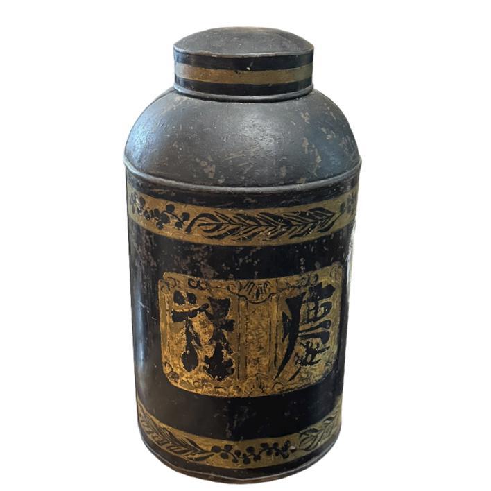 Toleware tea canisters are elegant examples of early 19th-century decorative metalwork, popular during the English Regency period (circa 1811-1820). Crafted from tinplate and hand-painted in rich colors, these canisters often featured gilded details, floral motifs, and chinoiserie scenes that reflected the era's fascination with exoticism and refinement.