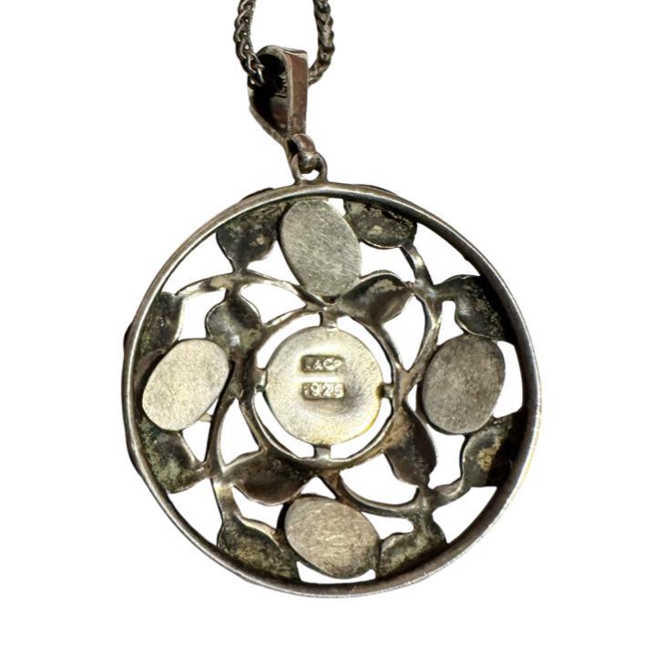 Circa 1900, Liberty of London Arts & Crafts silver and pearl naturalistic pendant with original silver chain