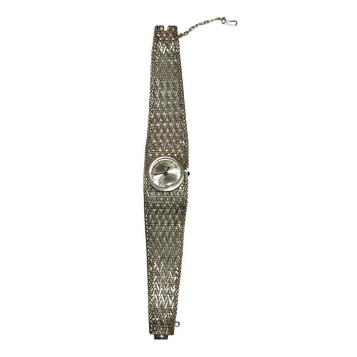 A retro Amex silver woven bracelet watch with manual wind movement, circa 1970