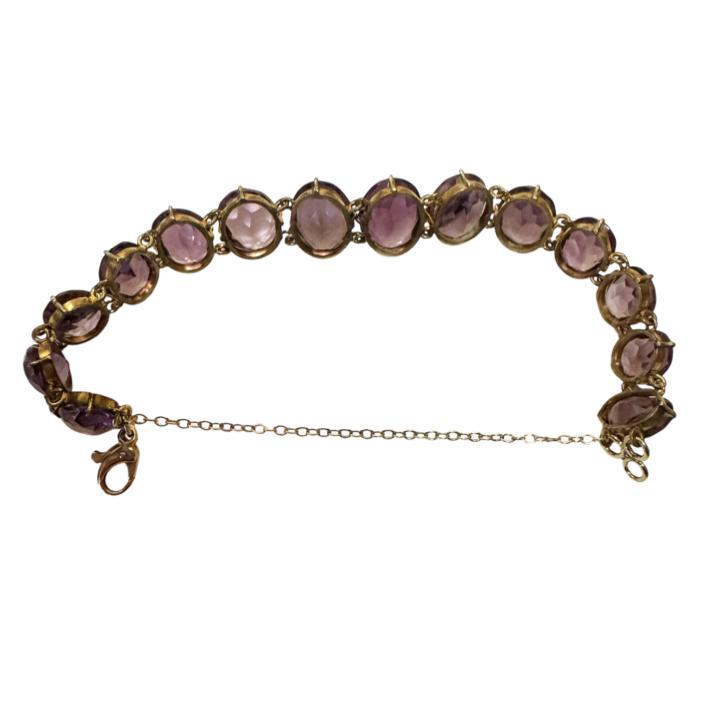 A Victorian rivière amethyst bracelet set in silver and gold. Each oval cut stone in crown mounts. Circa 1880