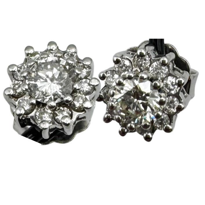 A pair of 18ct white gold diamond cluster ear studs set with brilliant cut diamonds, circa 1950.