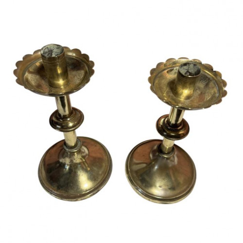 An Arts & Crafts hand-beaten pewter hand mirror inset with glass cabochons, circa 1910