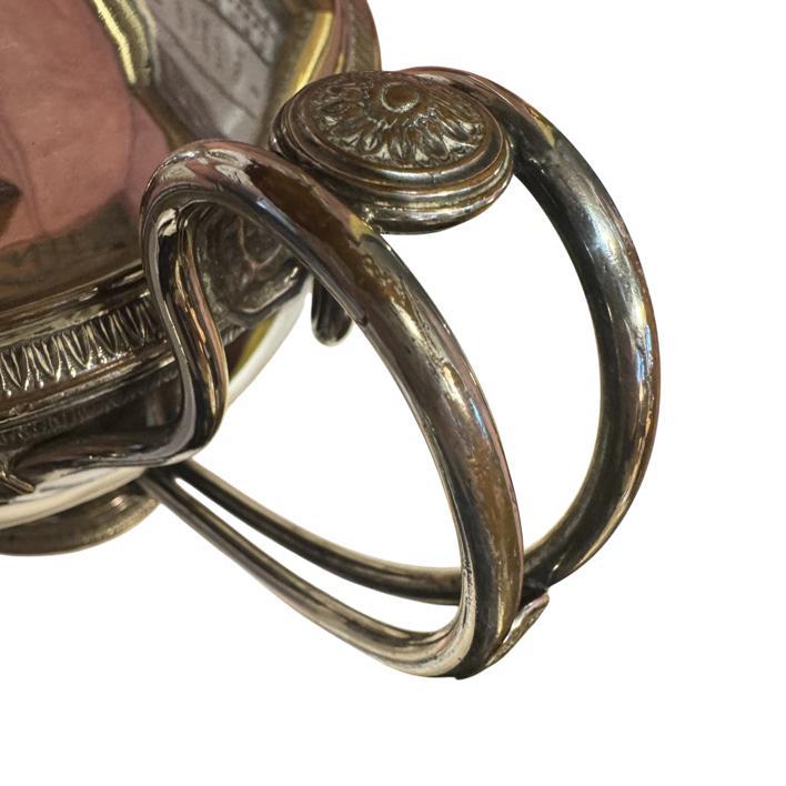 A fabulously over-the-top French neo-classical silver on copper urn-form tureen with lid and liner, circa 1800.