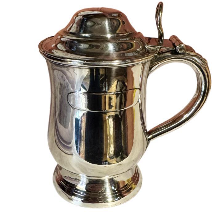 An 18th century Old Sheffield Plate half pint lidded tankard circa 1760