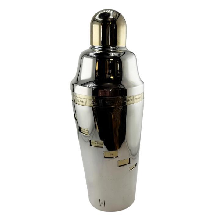 Patented in 1937, the shaker reflected Art Deco ingenuity by integrating engraved drink recipes directly onto its body, allowing home bartenders to mix classics without consulting a book. Each rotating sleeve revealed formulas for popular cocktails, merging practicality with glamour. Produced through the mid-20th century, it became both a bar tool and conversation piece.